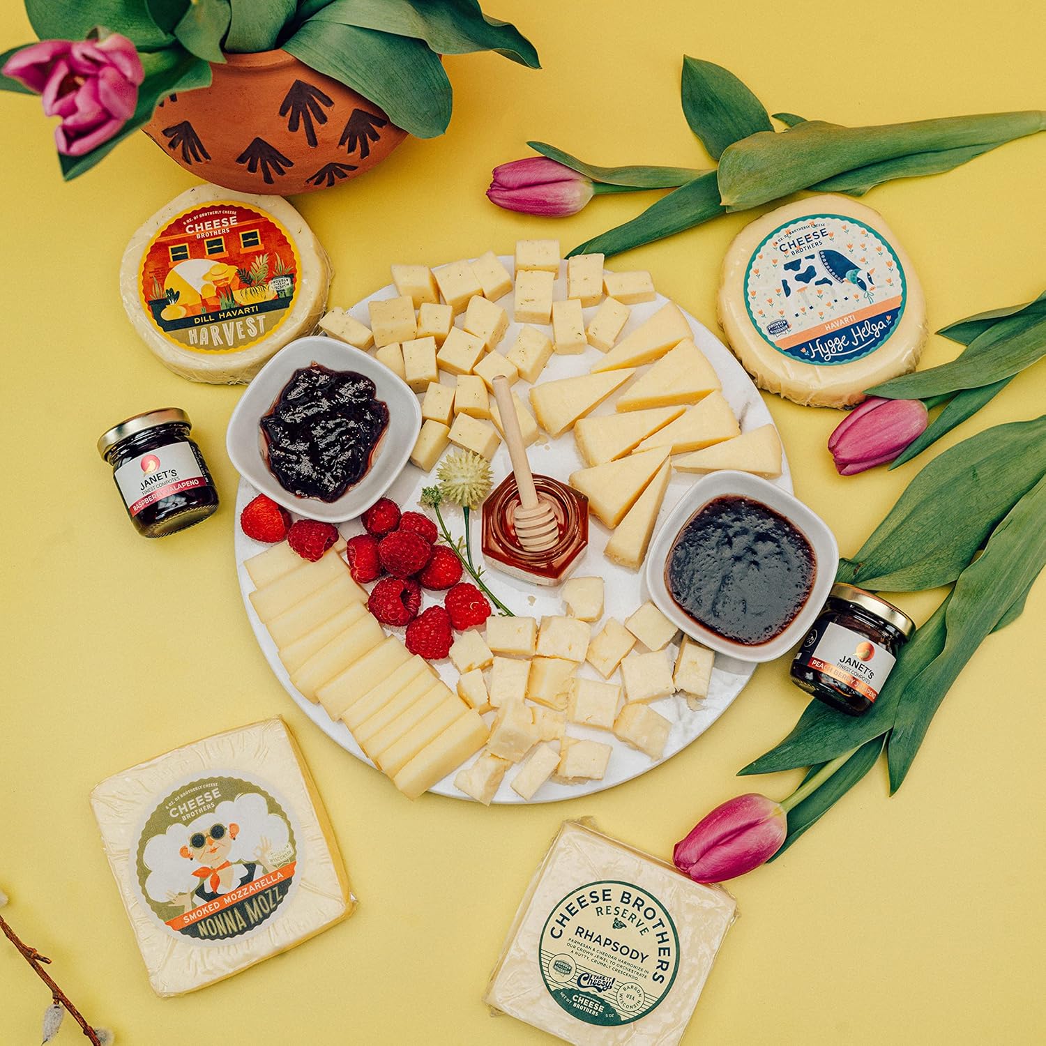 Cheese Bros. "World's Cheesiest Mom" Gift Box | Fresh from Wisconsin | Includes Mozzarella, Dill Havarti, Yodel, Adelheid, Jam and Honey | Unique Birthday and Mother's Day Gifting Idea
